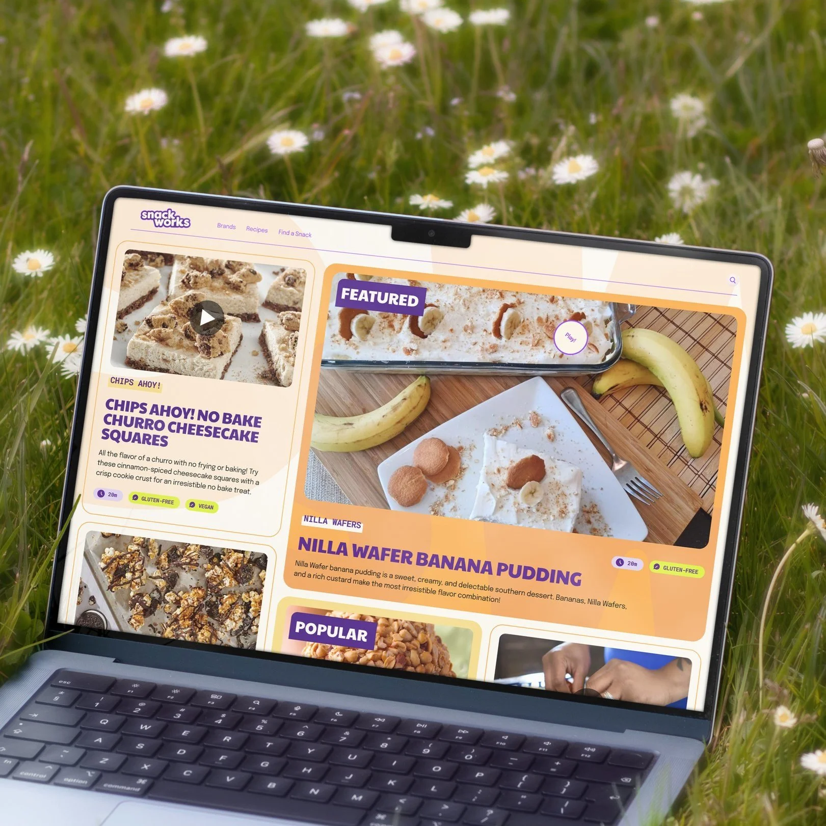 SnackWorks, a sub-brand of Mondelez, serves as a digital hub for all things snack-related, including recipes, nutrition facts, and brand information. Mondelez tasked us with creating a new digital presence for SnackWorks, and this case study explores the comprehensive rebranding and digital overhaul we undertook to transform SnackWorks into a vibrant, engaging platform.